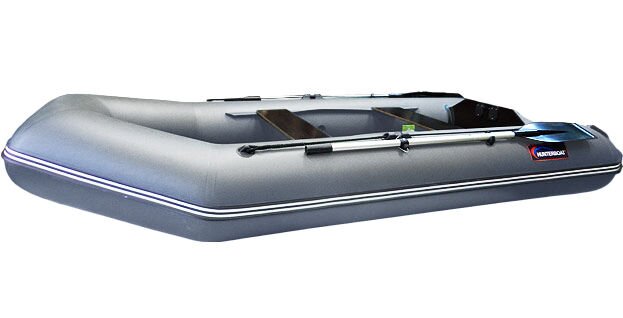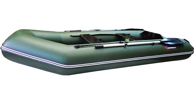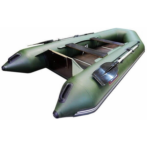 Лодка имеет стационарный транец под мотор, мощность которого достигает 6 л.с. Ее неподражаемые мореходные качества, легкий ход под веслами и мотором, а также небольшая масса в сочетании с компактной упаковкой, привлекают массу покупателей. Такой водный транспорт подойдет для компании из двух или трех человек. Крепкий и устойчивый пол из 9-миллиметровой водостойкой фанеры удачно дополняет общую картину.