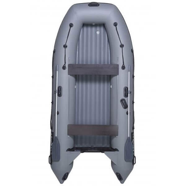 Модель Адмирал 410 НДНД предназначенная для использования в паре с мотором мощностью до 25 л.с., является лодкой с повышенными мореходными характеристиками – ярко выраженный киль позволяет легко взбираться на волну и переходить в режим глиссирования даже с 5-сильным мотором. Это не просто лодка – это полноценное компактное судно, на котором комфортно выезжать на охоту и рыбалку или отдыхать на малых водоемах небольшой компанией.