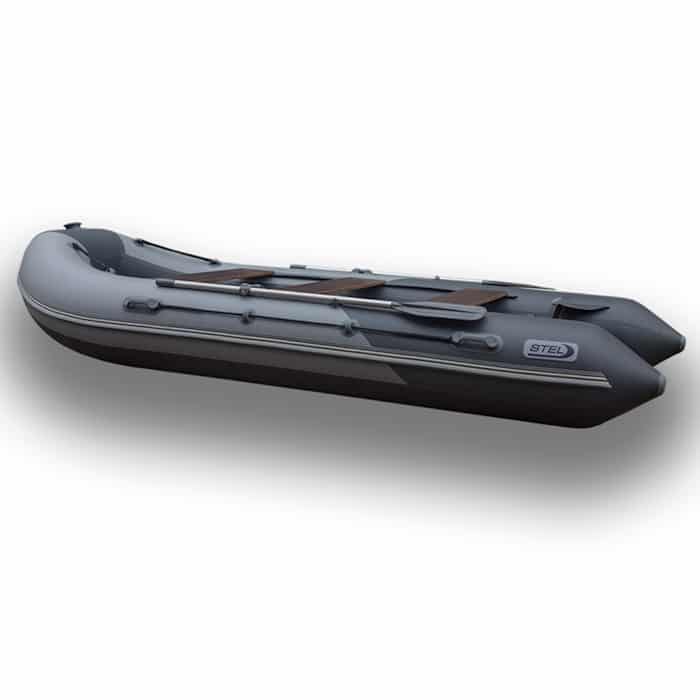 Надувная лодка Stel 05-400Н (палуба) — транцевая килевая лодка для экстренных служб, рыбаков на серьезных водоемах, для семейного отдыха на воде, включая дайвинг и экстремальные виды спорта, для буксировки водных лыжников, ватрушек и бананов, для рыбалок и отдыха, связанных с продолжительными переходами.